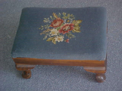 Title (ebay affiliate link): ANTIQUE WOOD FOOT STOOL W/ORG. NEEDLEPOINT TOP-NICE