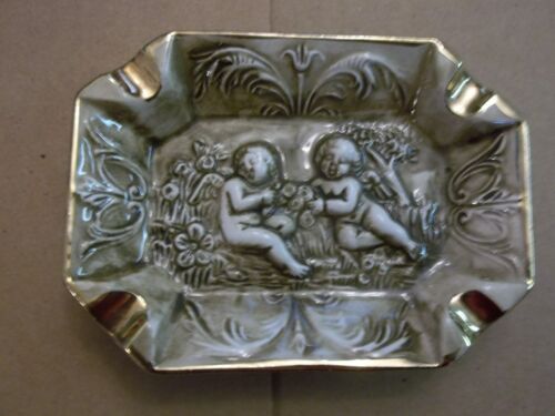Vintage R. Capodimonte Ashtray with Cherubs In Garden Gold Trim Italy