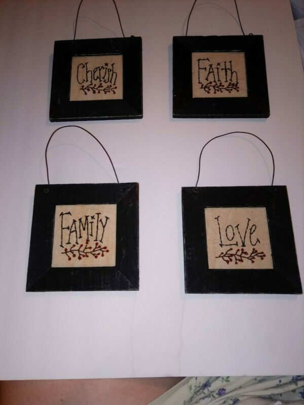Title (ebay affiliate link): 4 Individually Framed Primitive Words "Cherish" "Faith" "Family" "Love" In Black