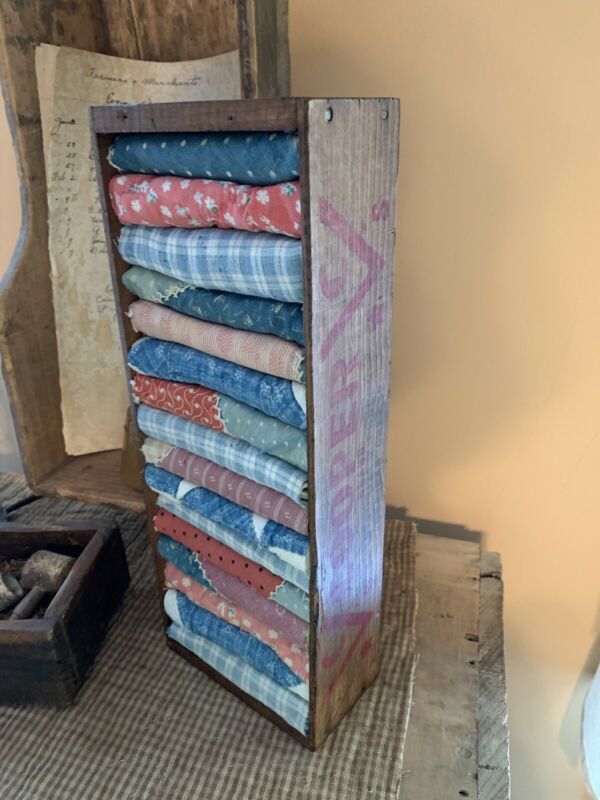 Title (ebay affiliate link): 5 Lb Wooden Cheese Box W/ Early Red Blue Calico & Homespun Quilt Scrapes Textile