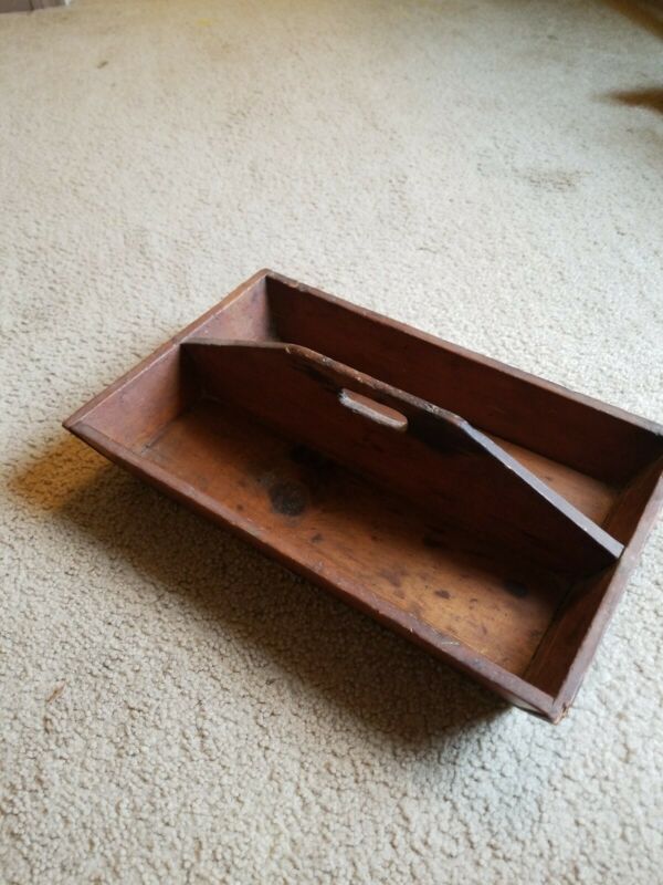 Title (ebay affiliate link): Vintage Carpenters Wooden Caddy Tool Carry Tote Tray Box Antique Handmade