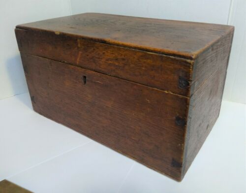 Title (ebay affiliate link): Antique DOVETAILED WOODEN STORAGE BOX Primitive Chestnut? Wood 10" L 5.5" T