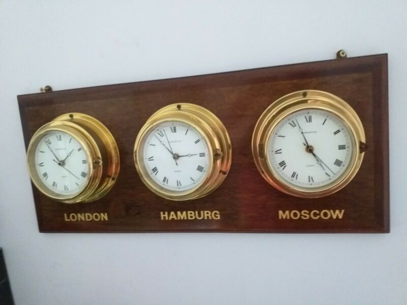 Triple wold Vintage Brass Nauticalia Ships Porthole Clock London Hamburg moscow