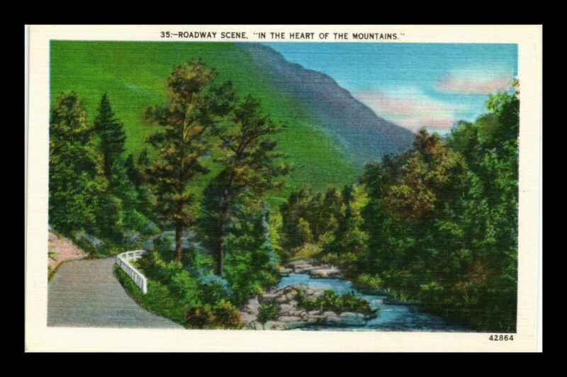 US POSTCARD ROADWAY SCENE HEART OF THE MOUNTAINS LINEN