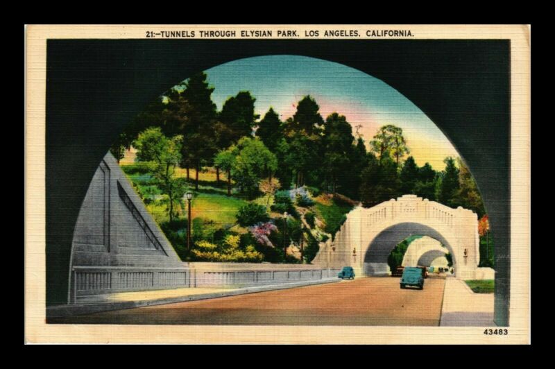 Title (ebay affiliate link): TUNNELS THROUGH ELYSIAN PARK LOS ANGELES CALIFORNIA US LINEN POSTCARD