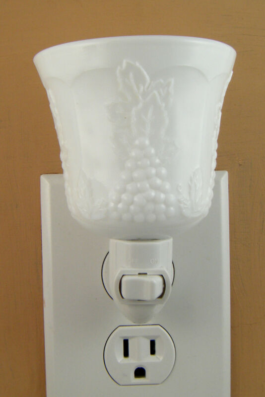 Title (ebay affiliate link): Indiana White Milk Glass Harvest Grape Pattern Custom Made Goblet Night Light