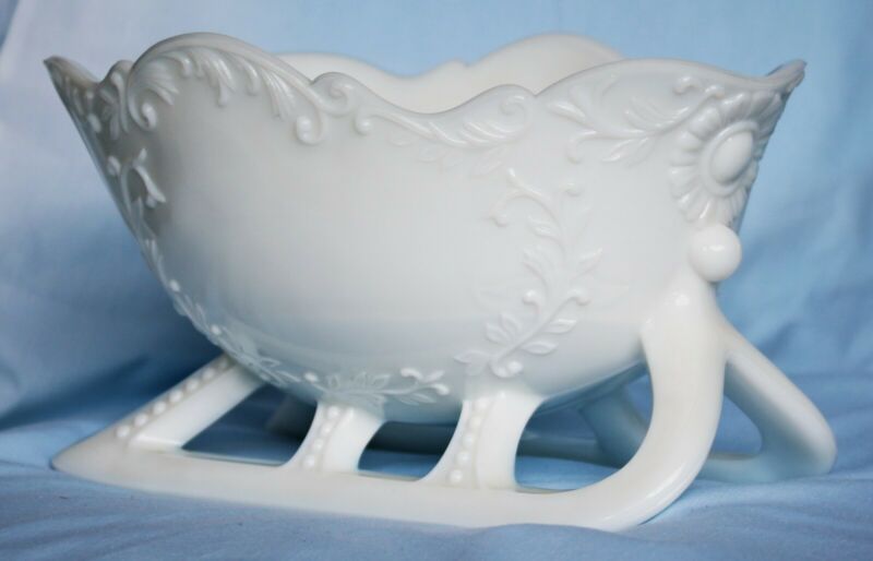 Title (ebay affiliate link): PRICE DROPPED~VINTAGE WESTMORELAND WHITE MILK GLASS SLEIGH BOWL~FLORAL~NR