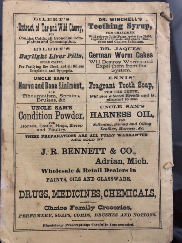 Title (ebay affiliate link): 1879 Uncle Sams Medicine Almanac Chicago With Adrian Michigan Druggist