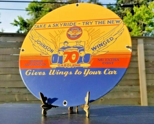 VINTAGE JOHNSON GASOLINE PORCELAIN METAL AD GAS SERVICE STATION PUMP PLATE SIGN