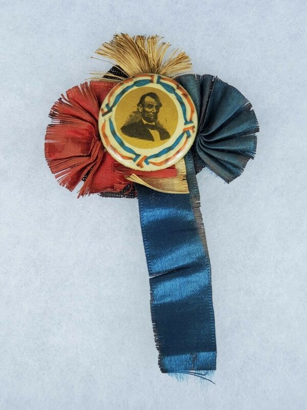 Title (ebay affiliate link): Antique 1909 Abraham Lincoln 100th Birthday Centennial Pinback on Ribbon Cockade