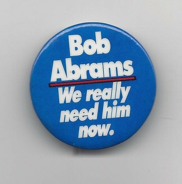 Title (ebay affiliate link): Bob Abrams New York (D) Attorney General 1978-84 political pin button