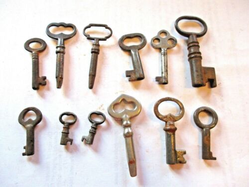 12 VINTAGE FURNITURE CABINET SKELETON DOOR LOCK HOLLOW BARREL OLD KEYS m