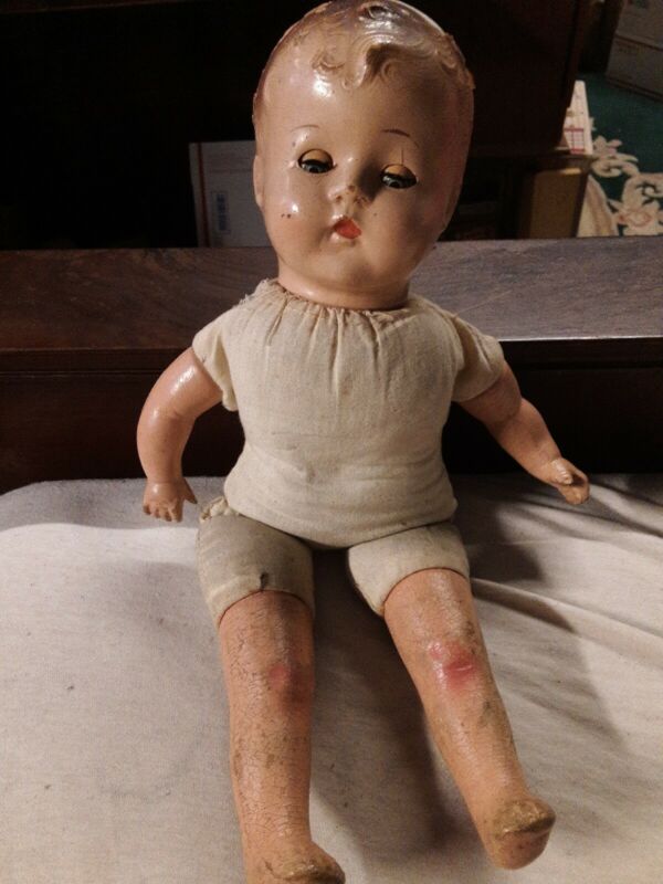 Title (ebay affiliate link): Unmarked ANTIQUE COMPOSITION Doll Blue Eyes Open And Close Appx 16"