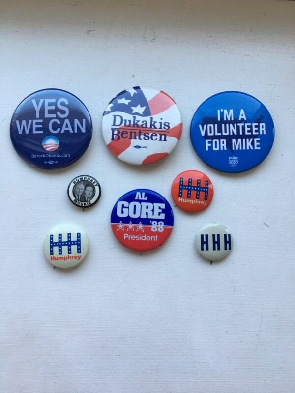 Title (ebay affiliate link): Random Democratic buttons Obama Dukakis pins Humphrey Gore Bloomberg pinbacks