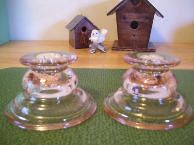 TWO PINK DEPRESSION GLASS CANDLE HOLDERS