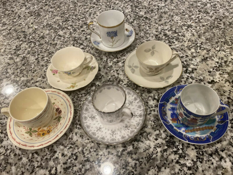 Set 5 Antique Demitasse Cups Saucers, Spode,Japan, Bavaria Etc...