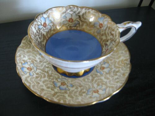 ROYAL STAFFORD BLUE GOLD CHINTZ PEDESTAL TEA CUP AND SAUCER