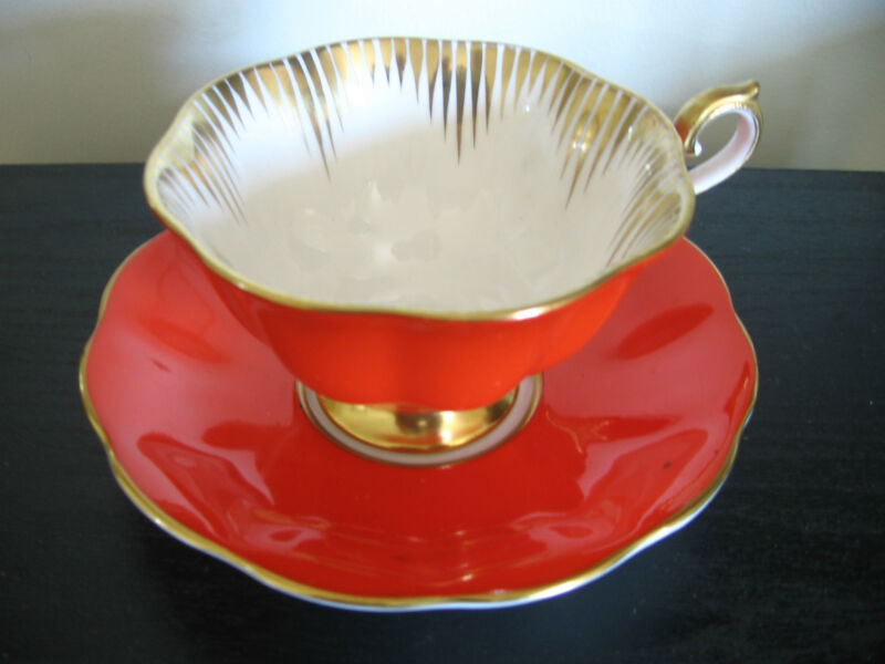 ROYAL ALBERT BOLD ORANGE GOLD SPIKE TEA CUP AND SAUCER