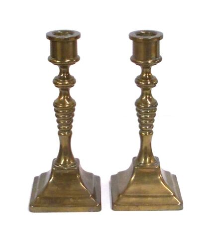 Title (ebay affiliate link): HEAVY SMALL PAIR OF ANTIQUE ENGLISH BRASS CANDLESTICKS SQUARE BASES 4 1/2 INCHES