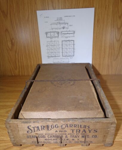 Antique Star 2 DOZEN EGG CARRIER WITH WOOD EGGS - VERY RARE
