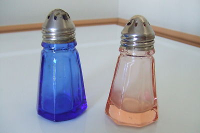 Hazel Atlas Depression Salt Shaker cobalt / pink