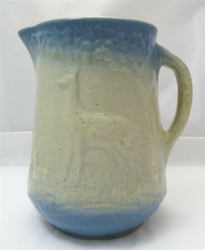 Antique Blue and White Salt Glazed Stoneware Deer Pitcher