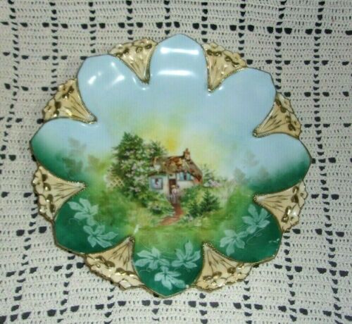 Gorgeous Antique R.S. Prussia Porcelain Plate With Cottage No Reserve
