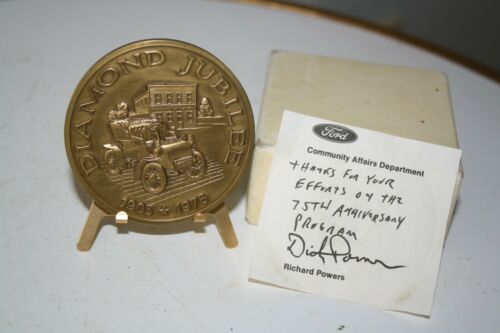 Title (ebay affiliate link): Ford 75th Anniversary Diamond Jubilee Bronze Medal w/Stand Box Signed Powers Box