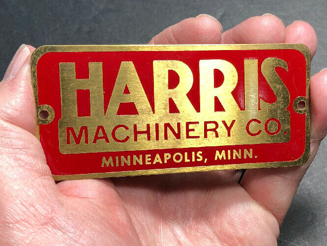 Harris Machinery Brass Advertising Nameplate Tag Mini Sign Minneapolis Minn