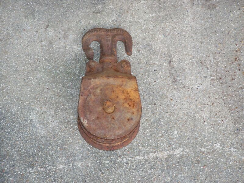 Title (ebay affiliate link): VINTAGE DURBIN-DURCO INC. ST. LOUIS MO. HOOK & PULLEY BLOCK & TACKLE Rusty