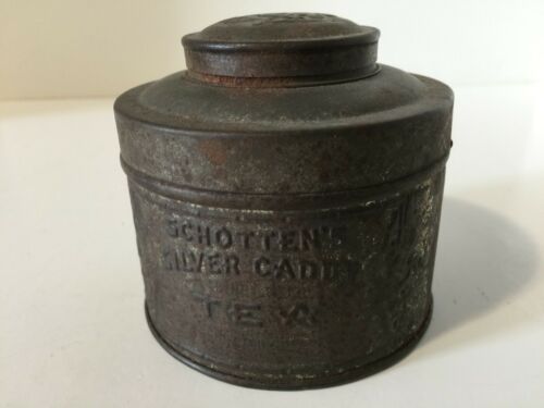 ANTIQUE SCHOTTEN''S SILVER CADDY TEA TIN CONTAINER