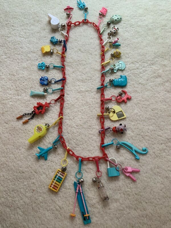 Title (ebay affiliate link): 1980''s VINTAGE BELL CLIP CHARM NECKLACE WITH OVER 25 PLASTIC 80''S CHARMS!
