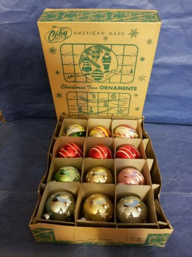 Vintage Coby box of 2 1/2" Christmas ornaments