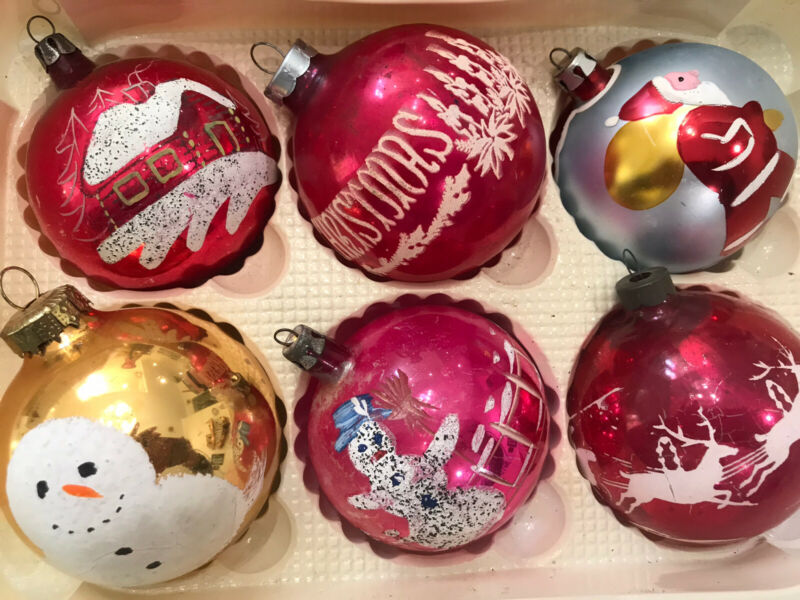 Title (ebay affiliate link): 6 LARGE Antique Vintage Mercury Glass Christmas Ornaments Poland USA Stencils