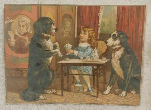 VICTORIAN ADV. TRADE CARD OVERSIZE GREAT ATLANTIC & PACIFIC TEA COMP. GIRL DOGS
