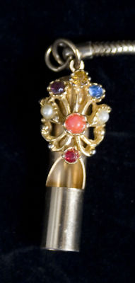Title (ebay affiliate link): Vintage Jeweled Rhinestone Whistle Keychain Goldtone