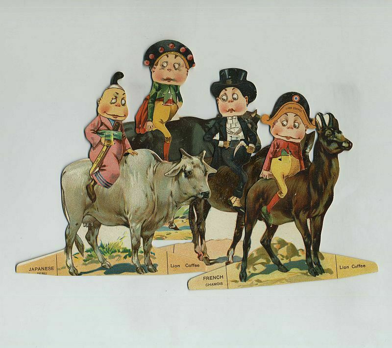 Lot (4) 1800''s Lion Coffee Brownies Die Cut Dolls Advertising Trade Cards hj6186