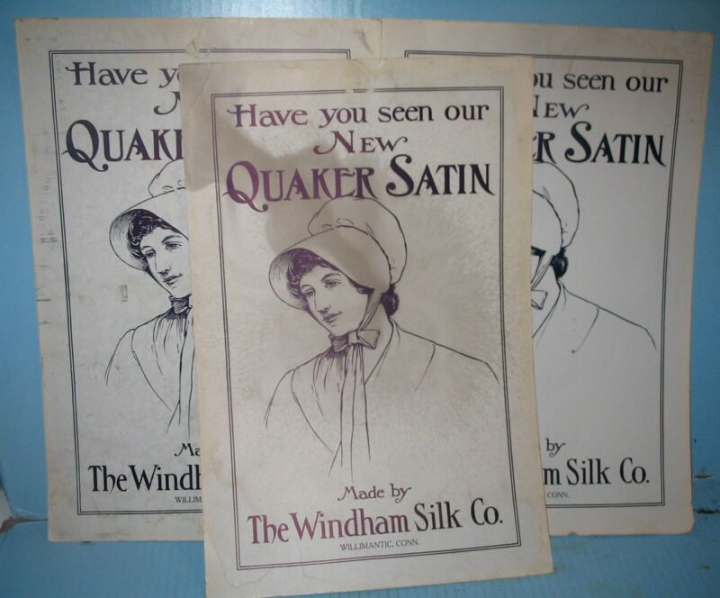 Title (ebay affiliate link): 3 Windham Silk Co Quaker Satin Cardboard Signs Willimantic CT Pretty Girl