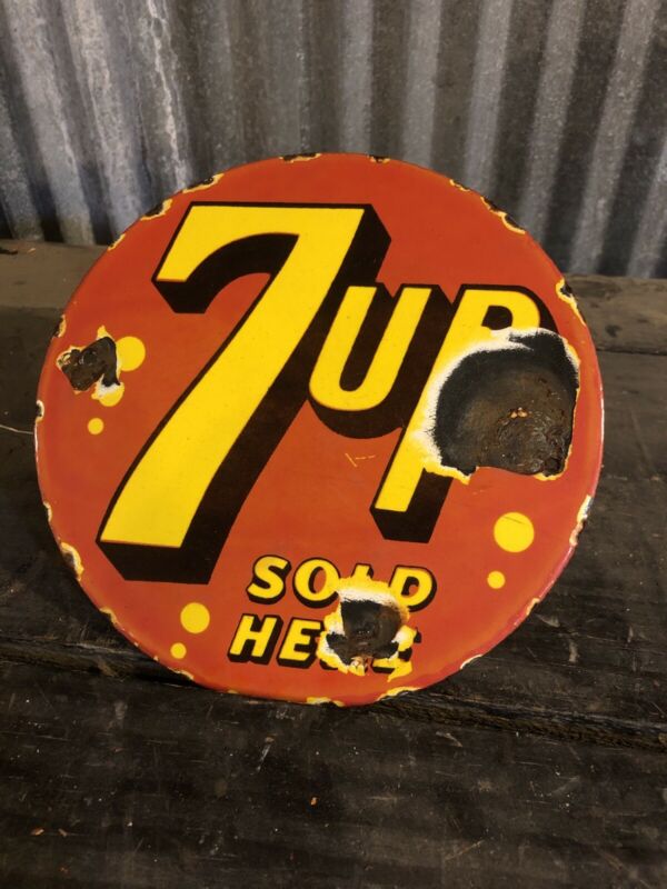Title (ebay affiliate link): Porcelain Soda Shop Sign 7up Antique Cooler Bottle Dr Pepper Coke Vintage