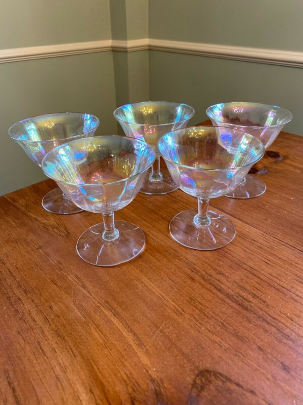 Title (ebay affiliate link): Lot Of 5 Depression Glass Clear Iridescent Dessert/Sherbert Glasses - Mint!