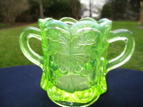 VASELINE OPALESCENT WESTMORELAND CHERRY THUMBPRINT DEPRESSION GLASS SUGAR BOWL
