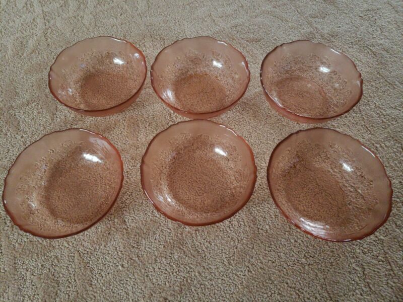 Depression Glass Bowls Pink With Rose Pattern Set Of 6