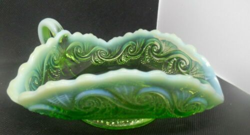 Title (ebay affiliate link): Vintage Green Depression Glass Triangle with Opalescent Lacy Edges Candy Dish