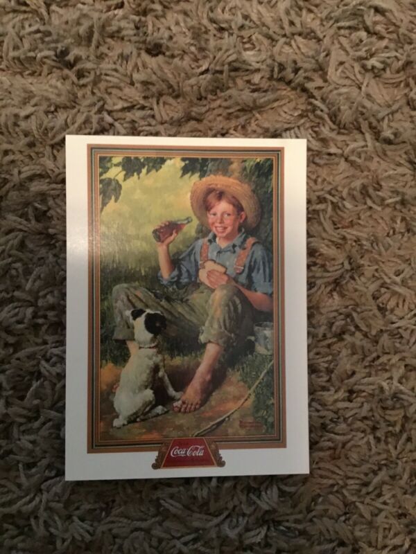 4 1/4 X 6in Coca-Cola postcard. Norman Rockwell "The Barefoot Boy" Unused