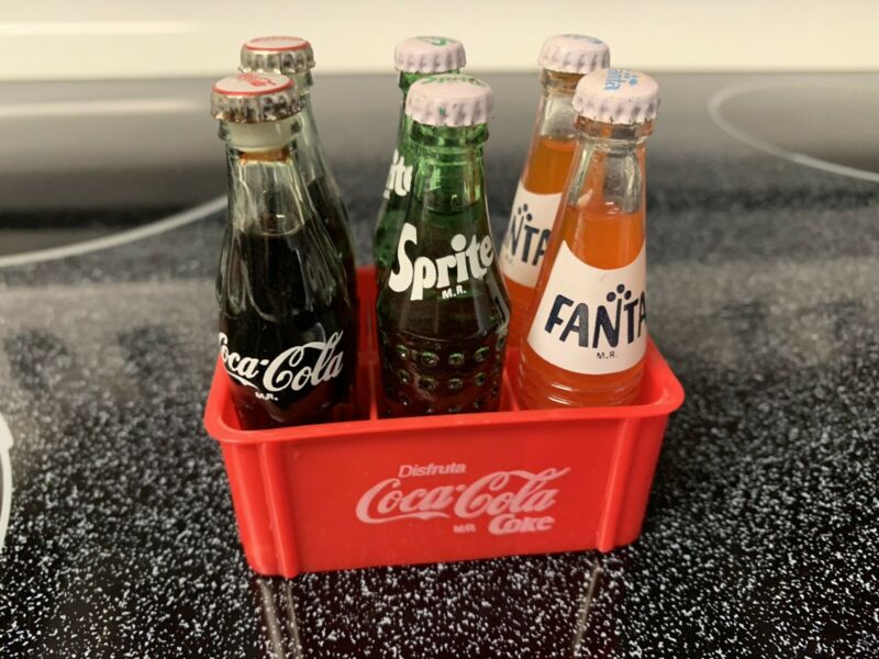Title (ebay affiliate link): Vintage Mini Coca Cola Red Plastic Crate with 6 bottles. Sprite And Fanta