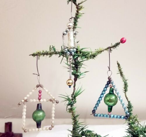 Title (ebay affiliate link): Three Beaded Ornaments. Early 1920s Czechoslovakian. Triangle, House, Geometric