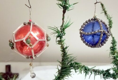 Title (ebay affiliate link): Two Beaded Ornaments. Early 1920s Czechoslovakian. Encased Glass Spheres.