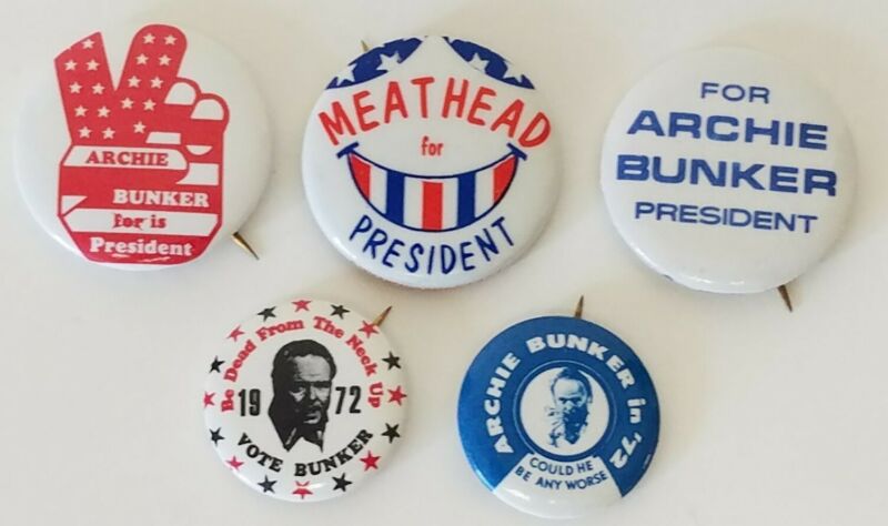 Five 1972 Archie Bunker for President Campaign Pinback Buttons