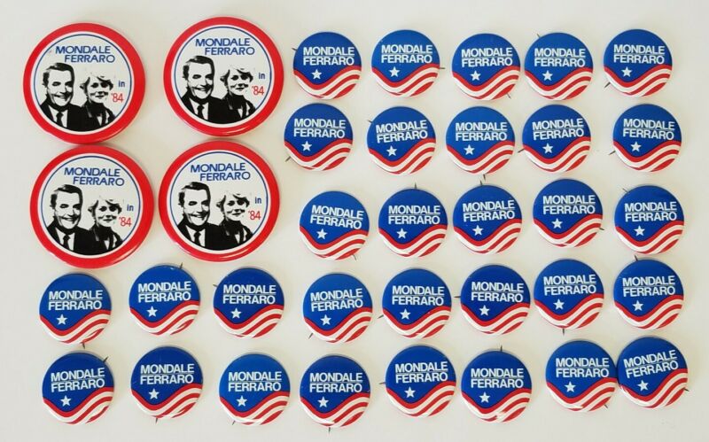 (35) 1984 Mondale - Ferraro Presidential Campaign Pinback Buttons