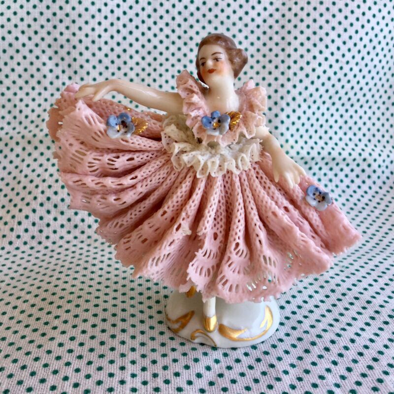 Title (ebay affiliate link): Sweet Vintage Dresden Lace Dress Porcelain Girl Dancing Mini Figurine Romantic